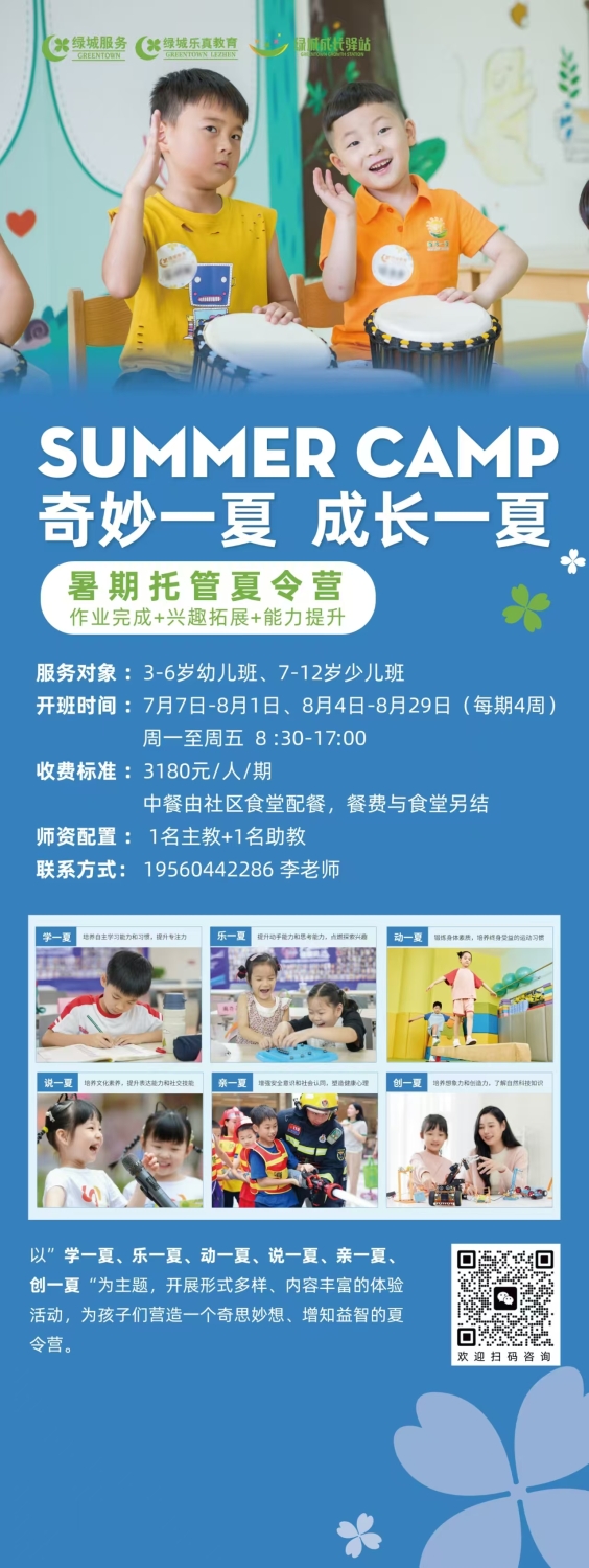 暑期托管夏令营3-6岁幼儿班,7-12岁少儿班开班时间:7...